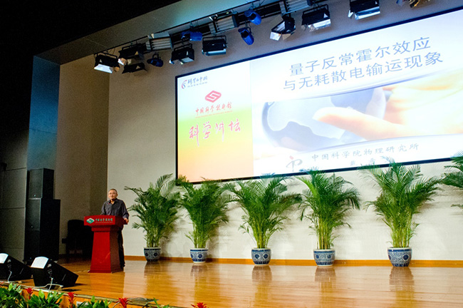 巡展开幕当天,物理所戴希研究员做了关于量子反常霍尔效应的专题科普报告。戴希研究员从霍尔效应的研究历史及原理讲起,由浅入深,通俗生动地为大家讲解了实现量子反常霍尔效应在科学上的重要意义,以及可能对人们生活带来的改观。他表示,实现这一重大突破是我国科学家长期积累、协同创新、集体攻关的结果。
