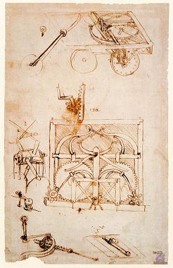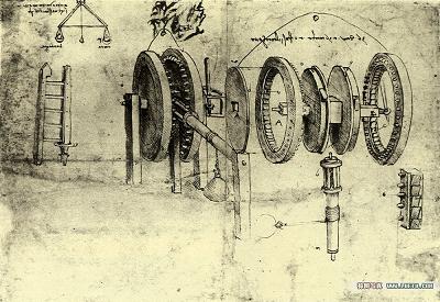 机械工程师达芬奇。达芬奇一生当中有许多机械设计图纸,几乎每一张图纸都堪称后代的重大发明甚至更为精妙。我不妨来欣赏一下他设计的一些机械,还有最原始的机器人模型。可别小看这个机器人 ,他靠机械的力量可以挥舞手臂甚至抬动下颚,更为奇妙的是,它还可以说话!——它有一个用自动鼓装置的发音器。达芬奇甚至设计的汽车!还有更多:乐器、闹钟、自行车、照相机、温度计、烤肉机、纺织机、起重机、挖掘机……达·芬奇曾有过无数的发明设计,而这些发明设计在当时如果发表足足可以让我们的世界科学文明进程提前100年!遗憾的是,他的这些图纸手稿在他生前并未公诸于世,只不过作为他日常自娱自乐的活动之一而已,这位聪明人的智慧,可见一斑。