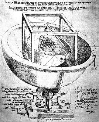 数学是思维的体操。而数学体操的世界冠军,当推开普勒。开普勒对数学的喜好正如古希腊学者们一样,十分重视数的作用,总想在自然界寻找数量的规律性 。规律愈简单,从数学上看就愈好,因而在他看来就愈接近自然。他信奉哥白尼学说,因为日心体系在数学上显得更简单更和谐。在他早期所著的《神秘的宇宙》一书中,他绘制出了一个多面体宇宙模型。模型体现了日月及五大行星的运行轨道。虽然这个学说因循了亚里士多德、托勒密和哥白尼的圆形轨道范畴,是一个错误的结论,但是开普勒的数学天分,已展露端倪。