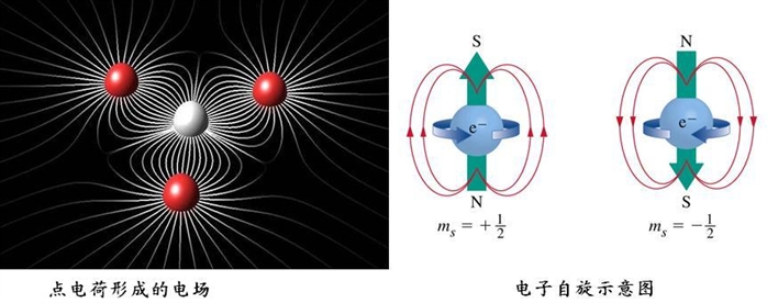 要注意的是,虽然说电和磁两兄弟来自同一个妈而且不分家,但毕竟哥哥和弟弟还是有区别的。看看最小的电荷——电子就知道,它不仅仅只有质量、体积、一个单位电荷,还有另外一个特征——自旋。即电子本身就是带1/2个单位磁矩的,一个单位磁矩叫玻尔磁子,就是具有N极和S极的最小磁单元。自旋并不是说电子不仅绕原子核公转还有自转,实际上由于电子半径非常之小,要是自转能产生如此大的磁矩的话,其边缘的速度就必定超过光速,这是违反物理规律的。我们并不清楚为什么电子会有自旋的特征,但我们清楚地认识到,电子具有内禀磁矩——自旋磁矩。现代物理学研究表明,不仅仅是电子,类似电子的其他轻子也有1/2的自旋磁矩,而其他微观粒子也有不同的磁矩大小,有的粒子完全可以不带电荷但却有磁矩,如中子。原子核的质子和中子组成将形成核磁矩,而核外电子也将产生绕核运动的轨道总磁矩和自旋总磁矩。实际上,电子的自旋磁矩要比轨道磁矩大得多,故原子的总磁矩主要来自于不同自旋方向的电子数差异形成的总自旋磁矩。这么一来,固体的磁性就来源于材料中原子磁矩的排列方式。如果原子磁矩大小相同并且方向相同,那么材料整体将体现铁磁性,它可以发生自发磁化并形成稳定态,如电流磁场把铁磁化成磁铁。如果原子磁矩大小相同,但是相邻的磁矩方向相反,那么材料整体将体现反铁磁性。如果原子磁矩的排列是杂乱无章的,那么材料整体就是顺磁性。原子磁矩在材料内部一定范围内形成微区的不同分布,可以形成所谓的磁畴,即每个畴区总磁矩方向都不一样。这么看来,磁的起源要比电的起源要更为复杂。