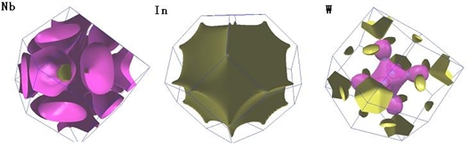 插图六:超导铌、铟、钨的费米面。(摘自佛罗里达大学物理系主页) |