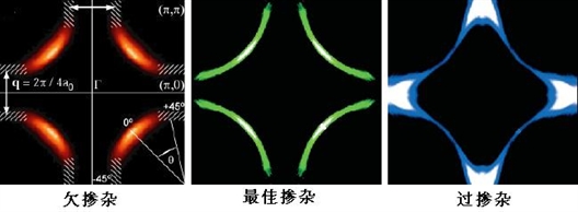插图七:高温超导的费米面随着掺杂浓度的变化而变化。