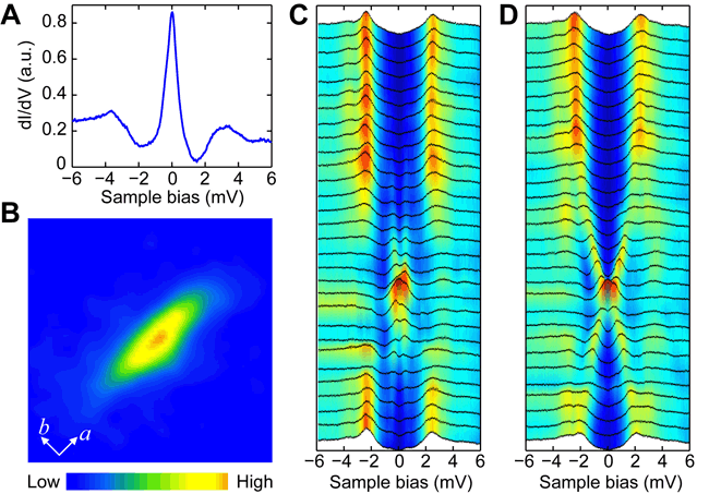 图9:STM/STS实验首次观察到铁基超导体中处于量子极限下的磁通束缚态,有关磁通测量的结果于2011年发表在Nature Physics上。关于多个无节点能隙的测量结果作为Rapid Communication发表在2011年的Physical Review B,并被选为该期的Editor’s suggestion。