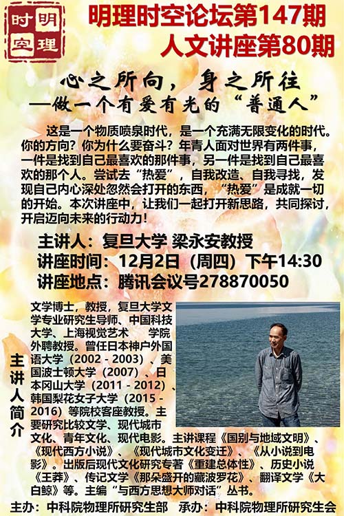 这是一个物质喷泉时代,是一个充满无限变化的时代。你的方向?你为什么要奋斗?年青人面对世界有两件事,一件是找到自己最喜欢的那件事,另一件是找到自己最喜欢的那个人。尝试去“热爱”,自我改造、自我寻找,发现自己内心深处忽然会打开的东西,“热爱”是成就一切的开始。本次讲座中,让我们一起打开新思路,共同探讨,开启迈向未来的行动力!