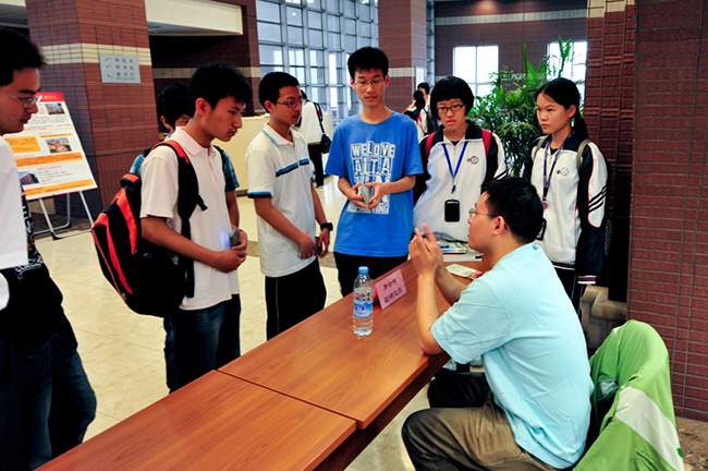 “与科学家面对面”科普咨询活动由曹则贤研究员、罗会仟副研究员共同主持,他们对参观者们提出的各种问题给予了耐心细致的解答。专门设立的招生咨询为前来参加活动的在校大学生提供了报考物理所相关问题的咨询服务。