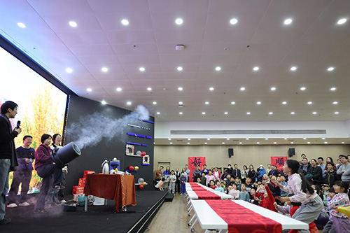 精彩的舞台表演率先点燃全场。由物理所研究生们自编自导的科学剧创意十足、妙趣横生,他们通过生动形象的演绎,将抽象难懂的科学原理转化为直观有趣的场景,孩子们看得目不转睛、津津有味,不时发出阵阵惊叹与热烈掌声;表演环节中,小提琴与古筝的跨界合奏悠扬婉转、余韵悠长,古典韵律让喧闹的现场瞬间沉静下来,大小观众们都沉浸在这份宁静优美的艺术氛围中;而活力满满的歌曲串烧则彻底点燃了现场气氛,孩子们跟着欢快的旋律挥舞着手臂,台上台下形成一片欢乐的浪潮,欢呼声、喝彩声不绝于耳。三轮紧张刺激的抽奖环节更是让惊喜持续升级,每一次中奖名单的公布都引发全场沸腾,中奖的家庭无不欢呼雀跃,脸上洋溢着幸福的笑容,现场的欢呼声、掌声此起彼伏,将欢乐氛围推向一个又一个高潮。
