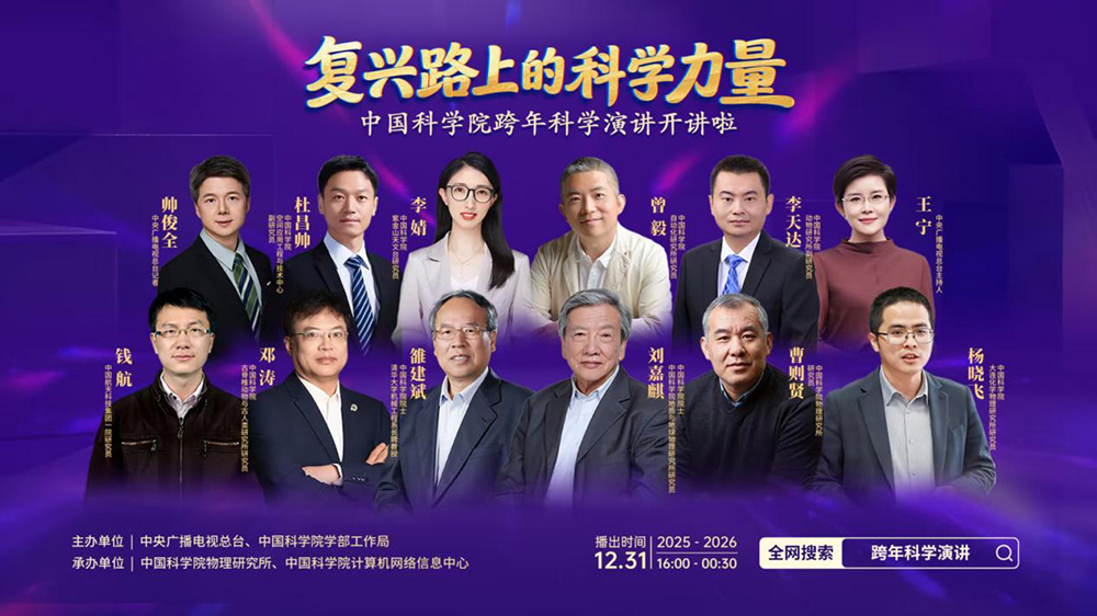 2025年12月31日,由中央广播电视总台、中国科学院学部工作局主办,中国科学院物理研究所、中国科学院计算机网络信息中心承办的2026“复兴路上的科学力量——中国科学院跨年科学演讲开讲啦”活动成功举办。多位专家学者、科普达人和慢直播团队在此次活动中带来了关乎科学发展又贴近生活、硬核又趣味满满的科学内容。活动直播实时在线观看人次累计超1100万。